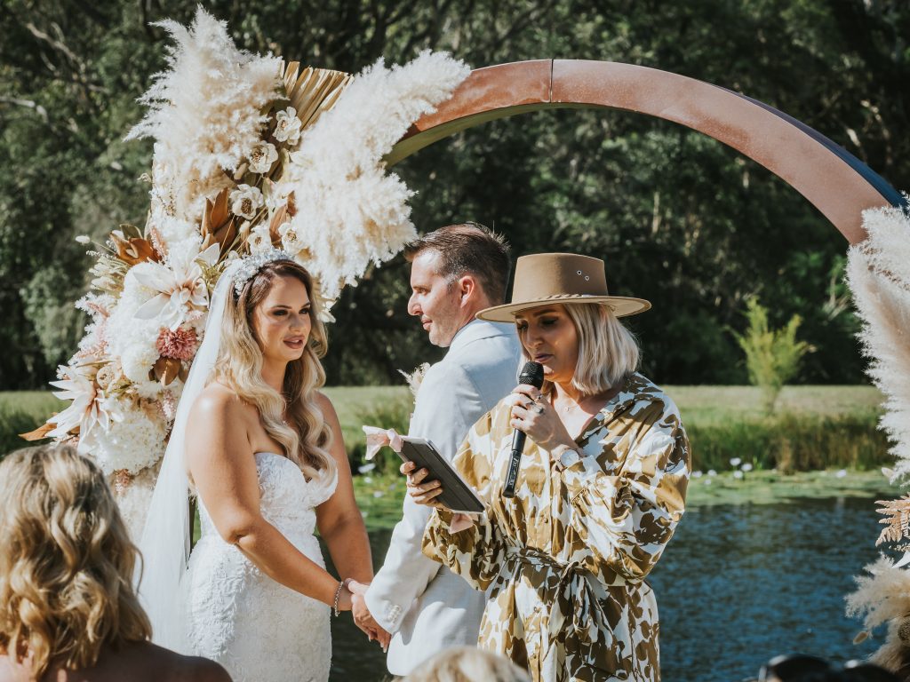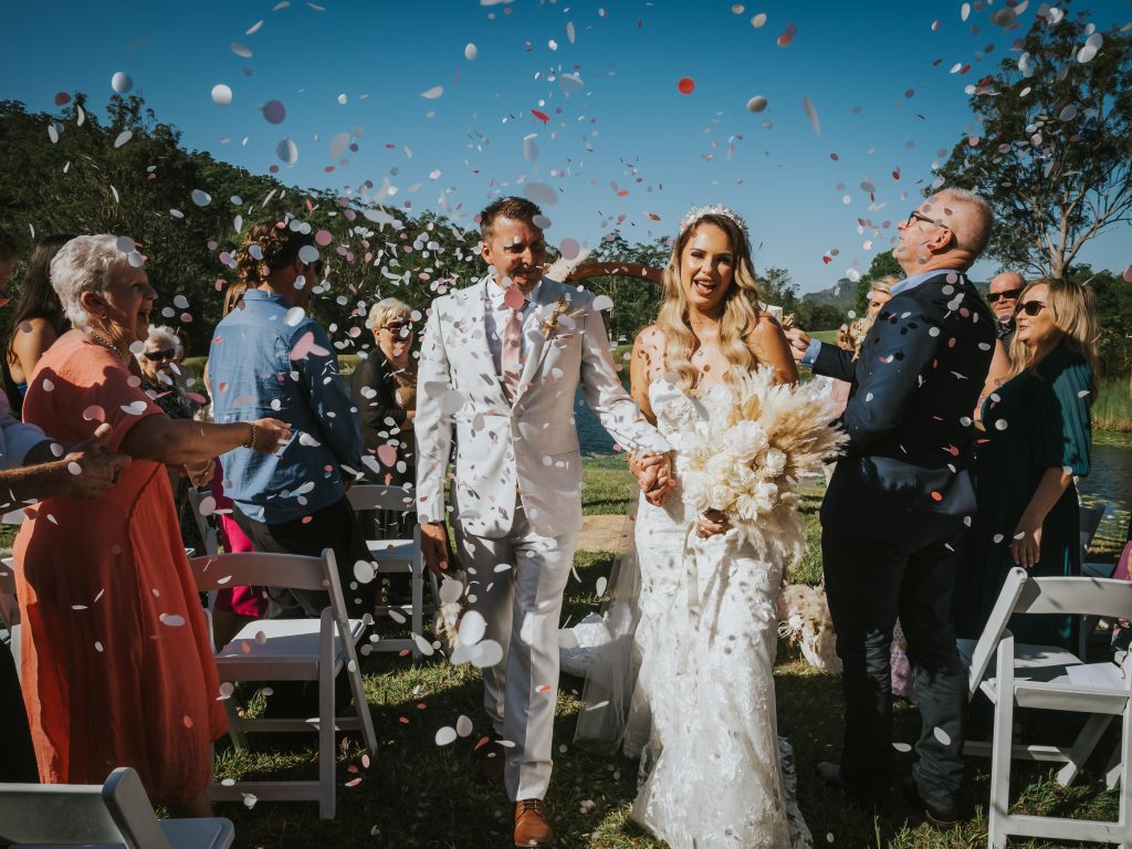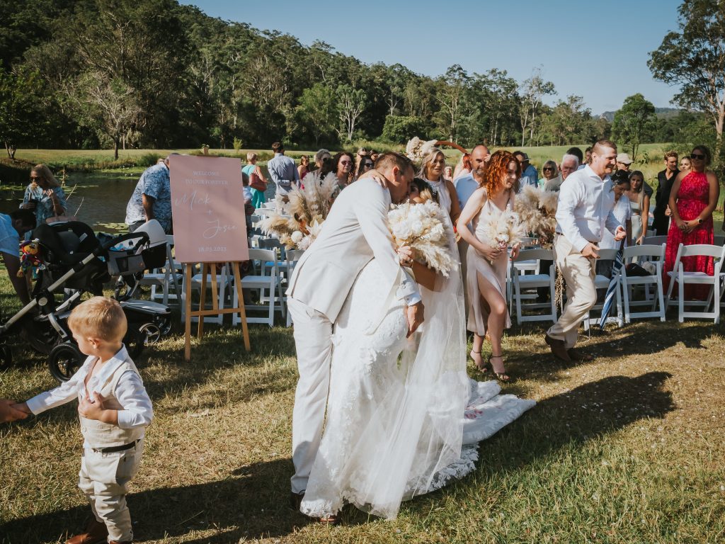 There are weddings, and then there are storybook weddings—the kind that feel as if they were plucked from the pages of a romantic fairytale. This tipi wedding, set in the gorgeous Gold Coast hinterland against the serene backdrop of rolling green hills, sparkling lake and an idyllic farmhouse, is undoubtedly the latter. A celebration of love wrapped in rustic bohemian charm, every detail was meticulously styled to reflect a soft, whimsical elegance.