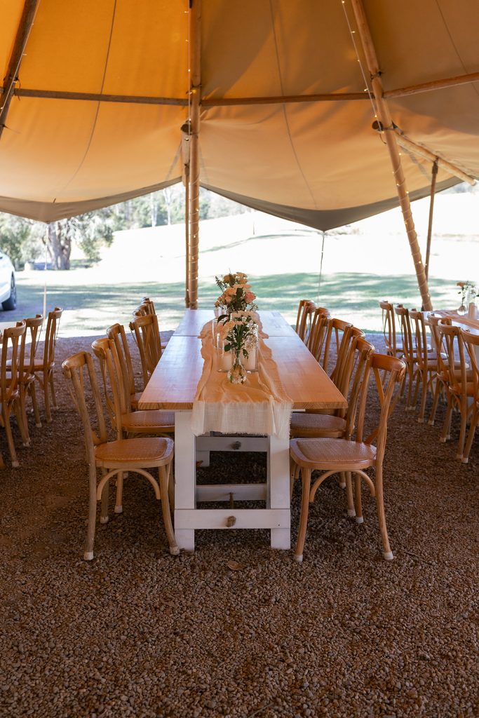 Under the tipis, the rustic charm of timber tables and crossback chairs always looks amazing with fairy lights and candles illuminating the space, and pretty florals adding the finishing touch. Such an intimate and romantic setting!
