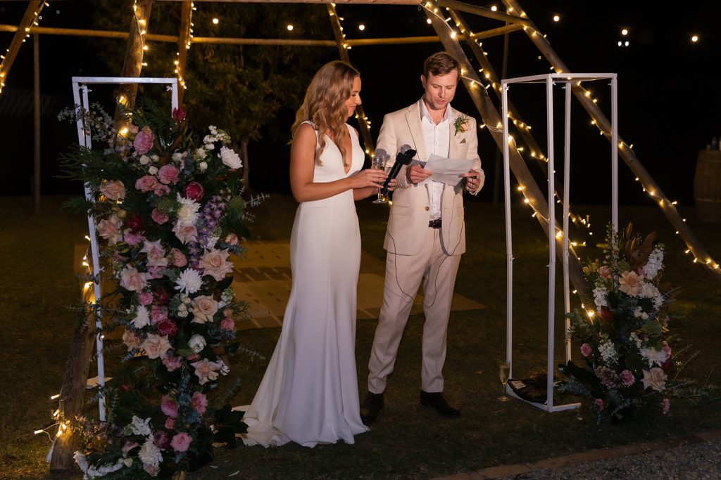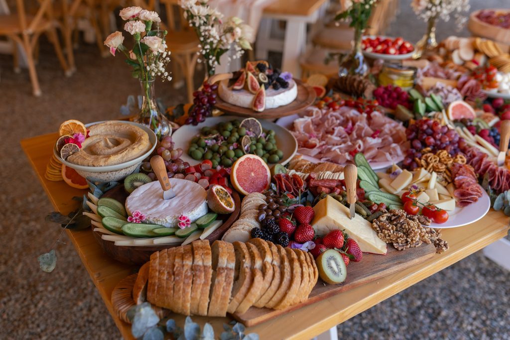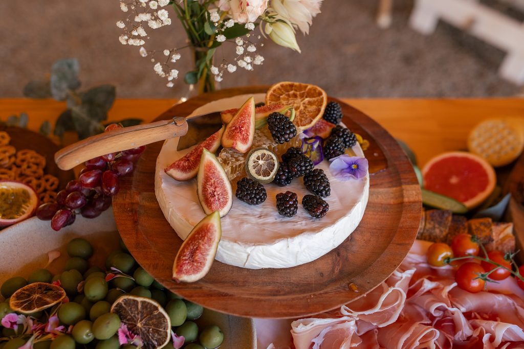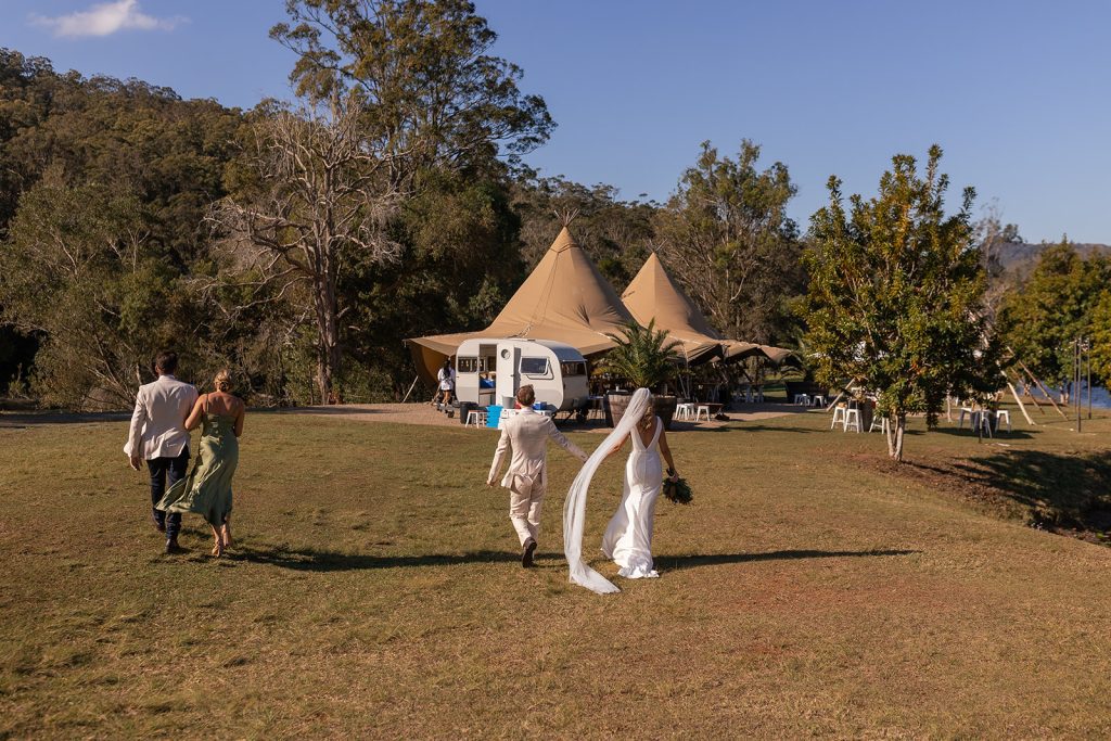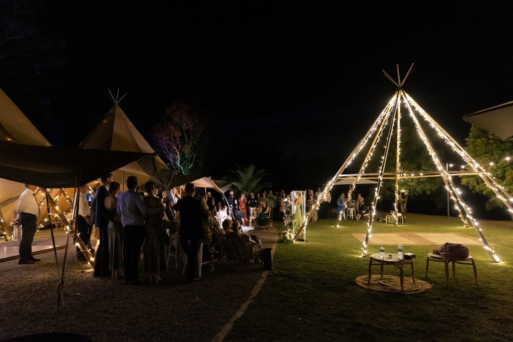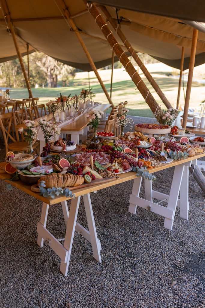 After a beautiful ceremony, guests made their way to the reception area, nestled under the shelter of our double Kata tipis for canapes from the stunning grazing table & drinks from the Vintage Lane mobile bar.