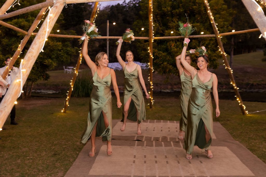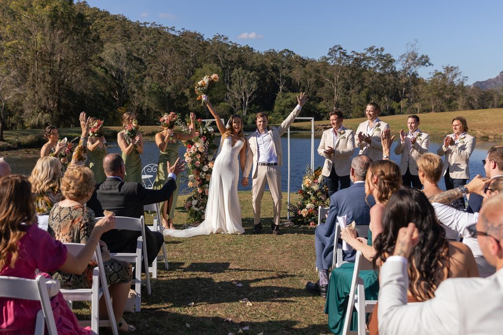 What a picturesque day at the Farm House! Danika and Matthew celebrated their love amidst the beauty of our very special venue in Numinbah Valley. Their wedding was a dreamy affair, filled with magical moments, breathtaking scenery and the most gorgeous bridal party. Against the backdrop of the tranquil lake, beautiful floral frames framed our couple as they said their ‘I do’s’