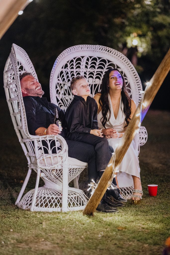 But the magic didn’t stop there. The reception, held under our sprawling canopy of tipis, was a stunning sight. Twinkling fairy lights danced above as friends and family gathered to celebrate the newlyweds. The air was filled with laughter and love as guests enjoyed delicious food and raised a glass to the happy couple.