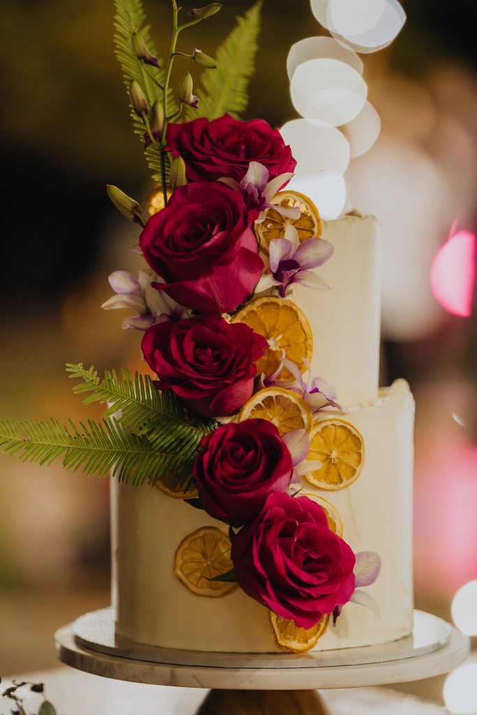 From the moment guests arrived, they were swept up in a whirlwind of vibrant colors and epic vibes. The ceremony took place at ‘point of the dam’, a favourite spot where the water always creates a picture perfect backdrop for the couple. After vows were exchanged, the sun dipped low casting a golden glow over the scene and creating a magical moment for photos.