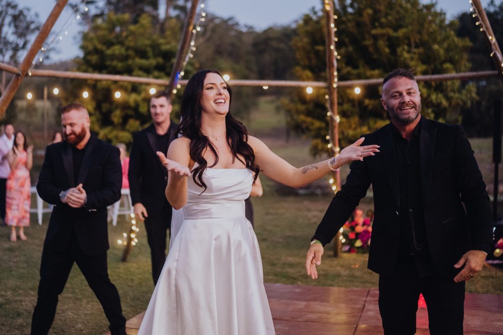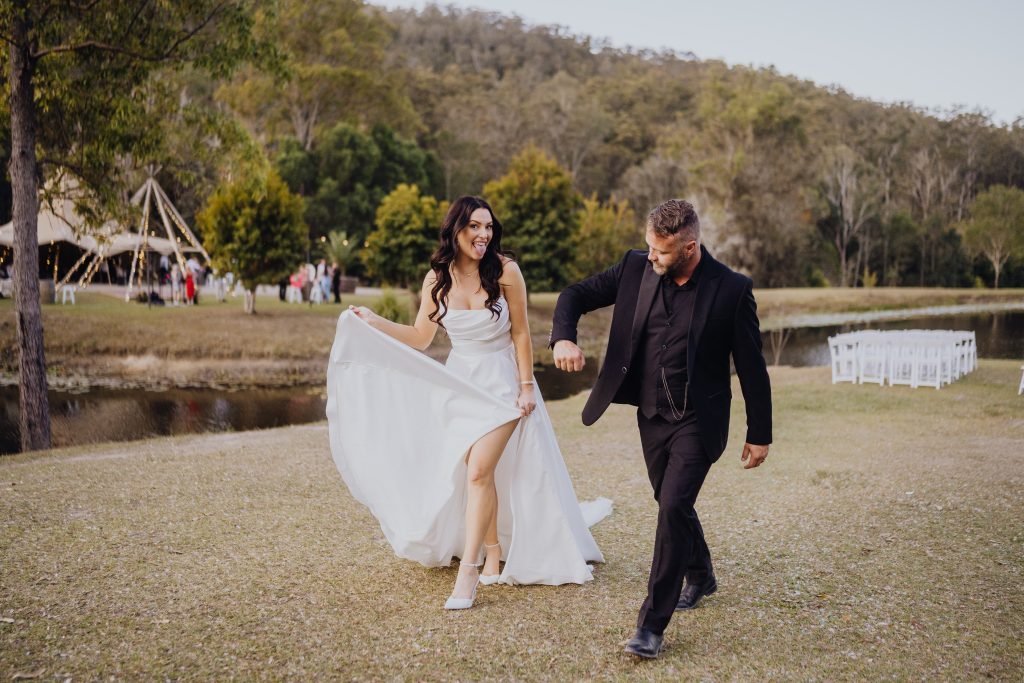 When it comes to weddings, few things are as magical as a beautiful countryside setting. The Gold Coast offers some of the most stunning landscapes for a perfect wedding, and Brittany & James’ special day was no exception. Their picturesque farmhouse wedding was a true celebration of love, surrounded by the beauty of nature. One of the highlights for us was seeing this breathtaking aerial view of the farmhouse. From high above, the layout of the wedding day, from ceremony to reception in the Tipis, is truly magical.