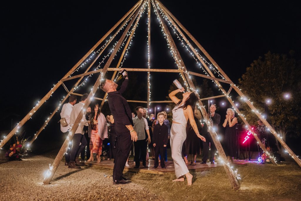 As the night wore on, the dance floor beckoned, and guests eagerly obliged. Under the naked tipi, surrounded by the beauty of the night sky, the happy couple and their favourite people danced the night away!