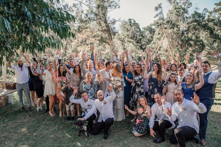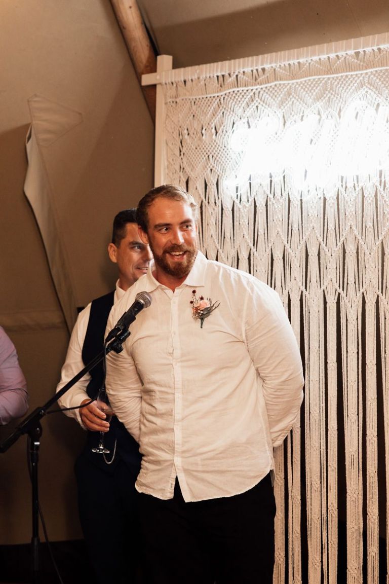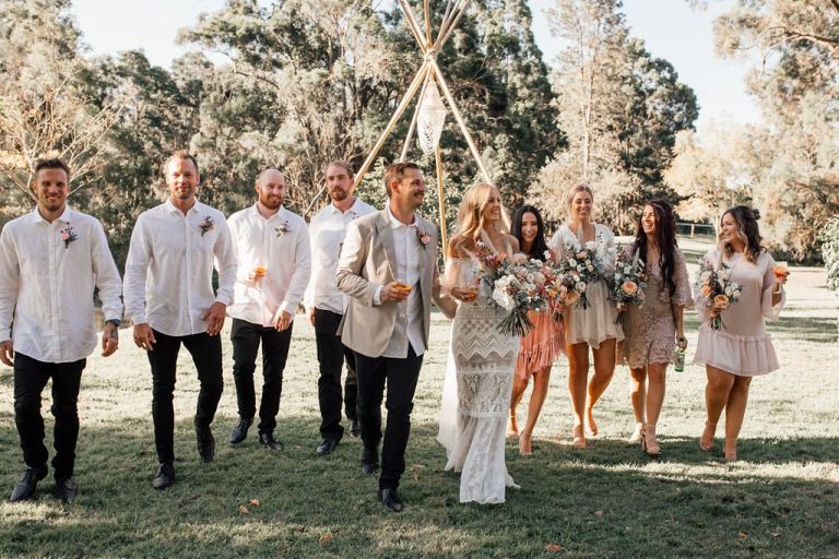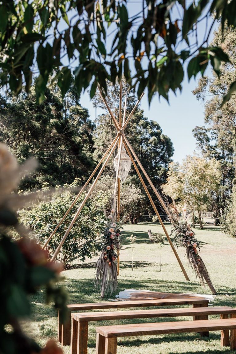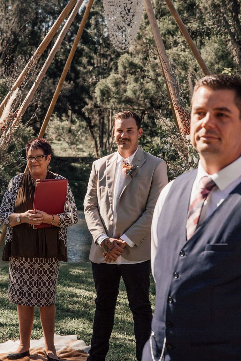 Venue: Riverwood Weddings Tipis: Gold Coast Tipis Furnishings: Global Vintage Hire Photography:Wilde Visual Film: Wilde Visual Catering: Scheer Delight Platters / Double Zero Pizza Bar: My Vintage Lane Wedding Planner/Co-ordinator: Carmen Kennedy – Riverwood Celebrant: Catherine Longworth Musician: Jesse Pumphreys Florist: Lola’s Wildflowers Styling: just me 🙂 Cake: NA – we had bubble-o-bills Dress: Grace Loves Lace Hair: The Style Room Make-up: The Style Room Suits: Made with Class Toilets: Riverwood Cool room: Riverwood Generator: Riverwood