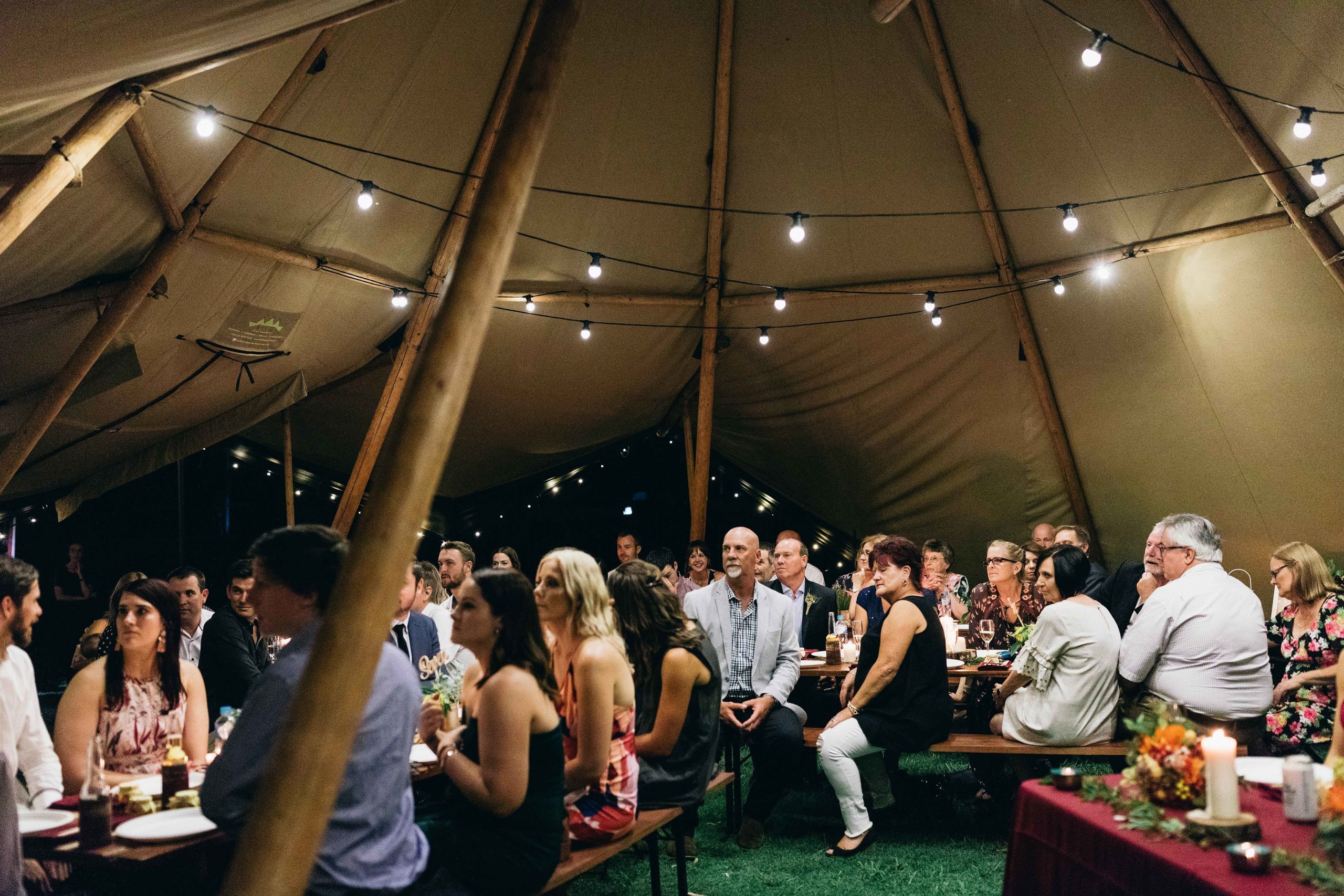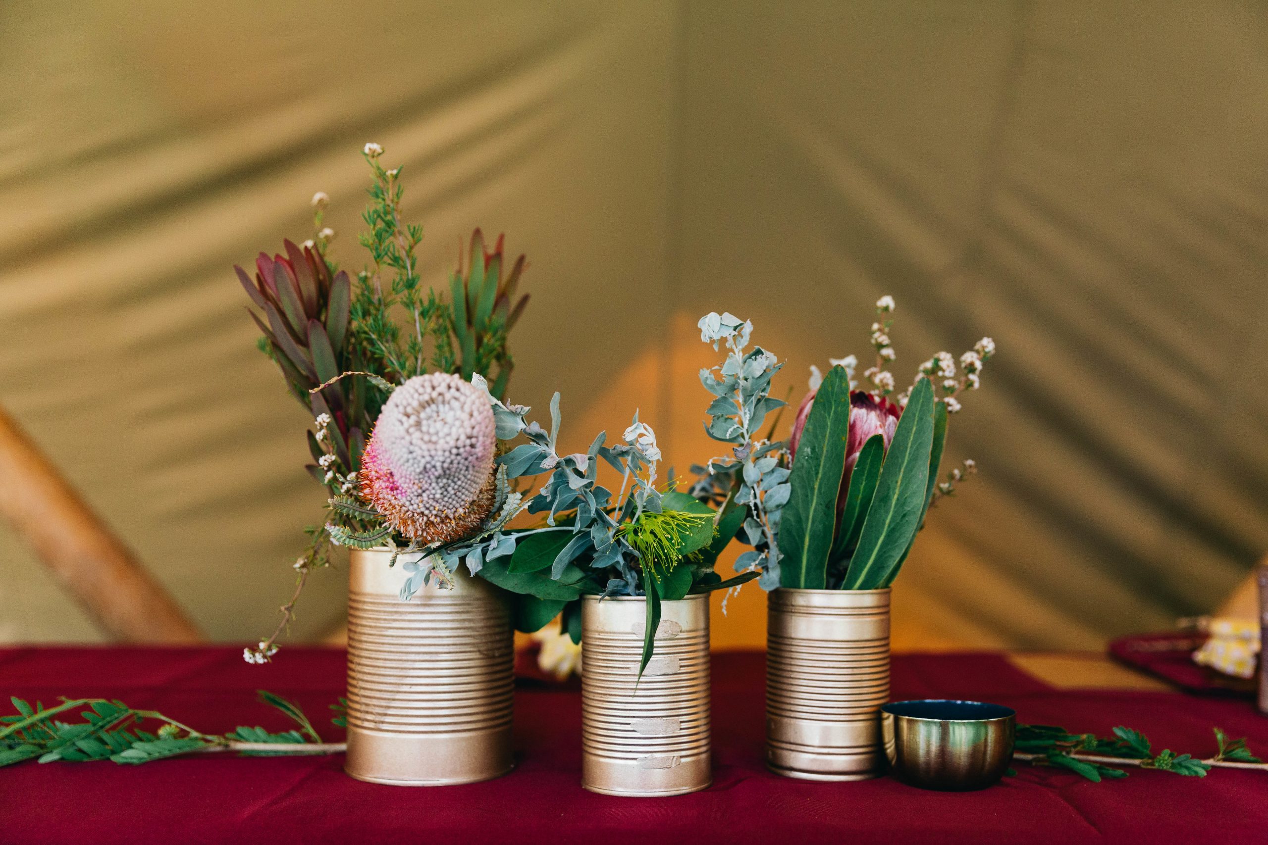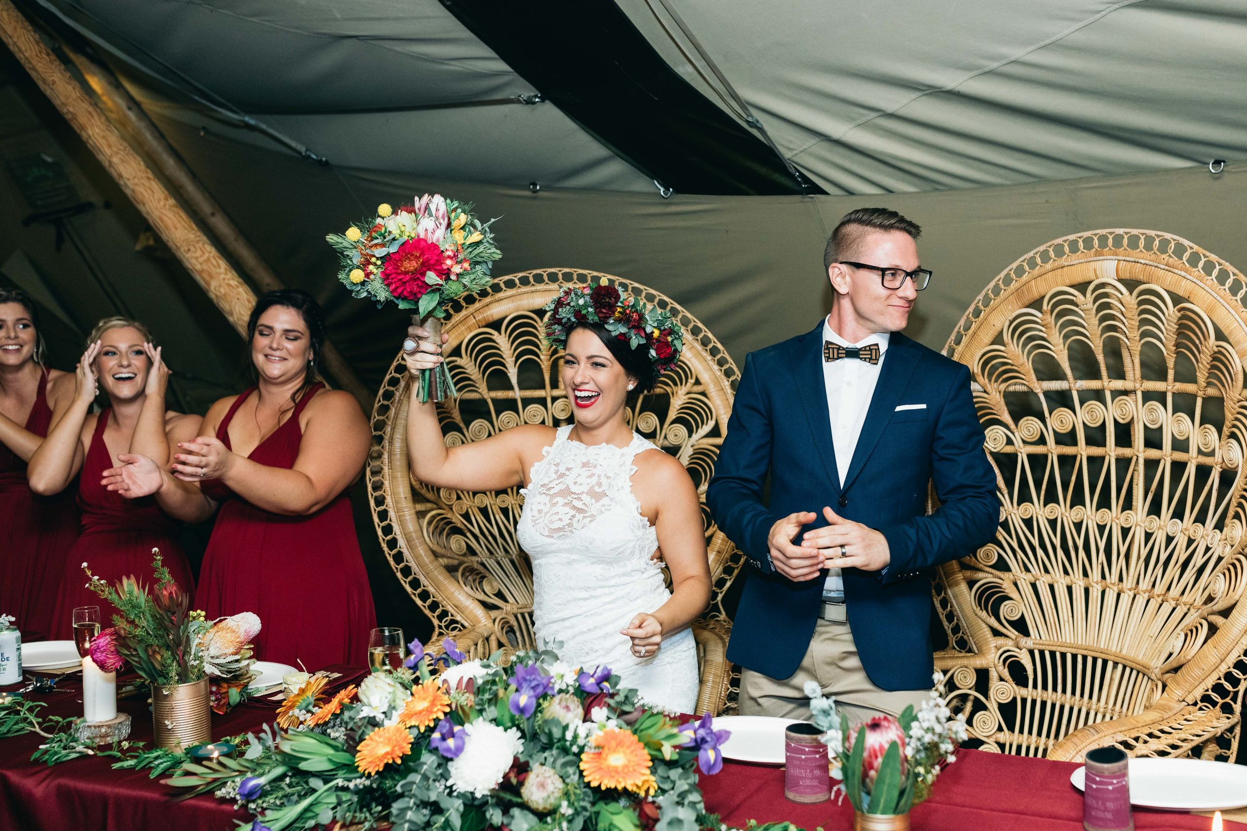 The tipis were decorated with timber and native blooms, taking inspiration from their stunning arbor that framed their vows earlier in the afternoon.
