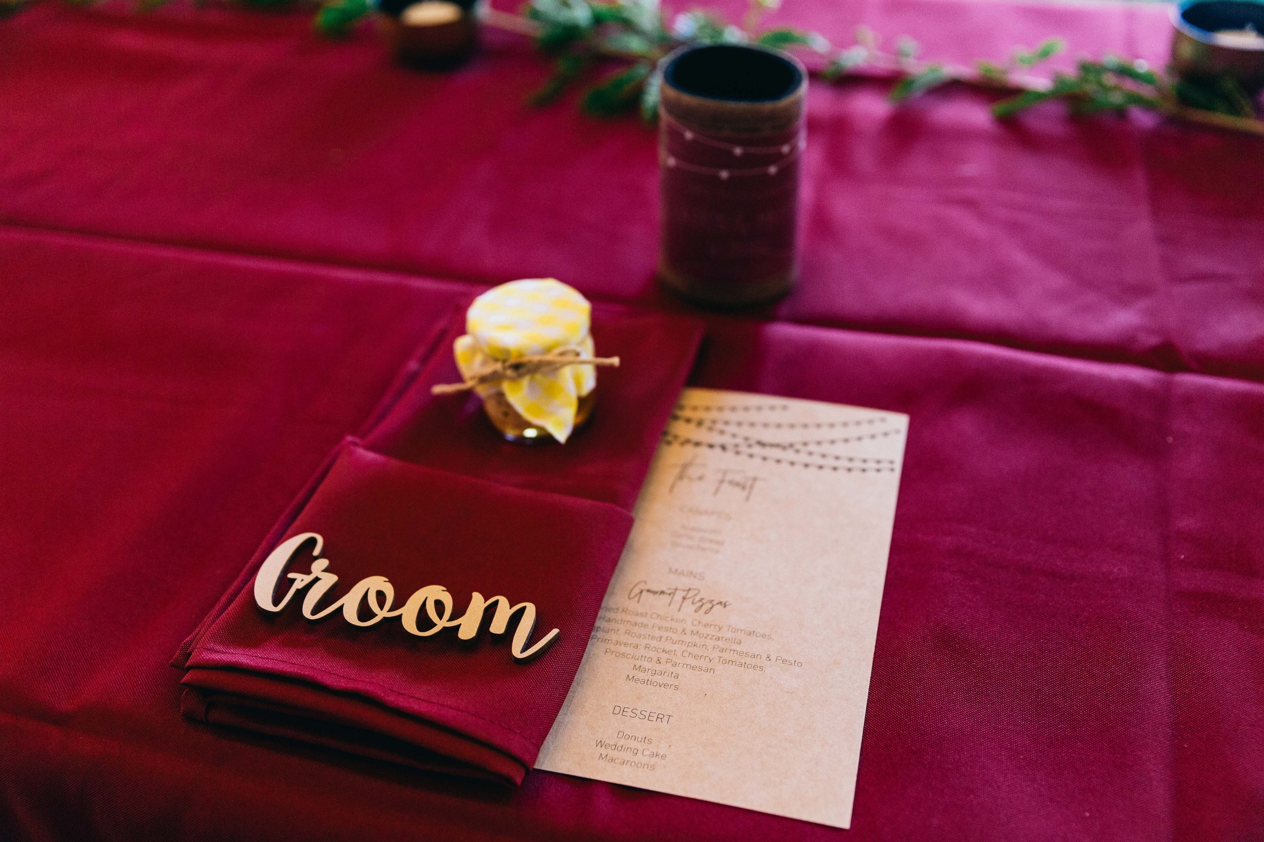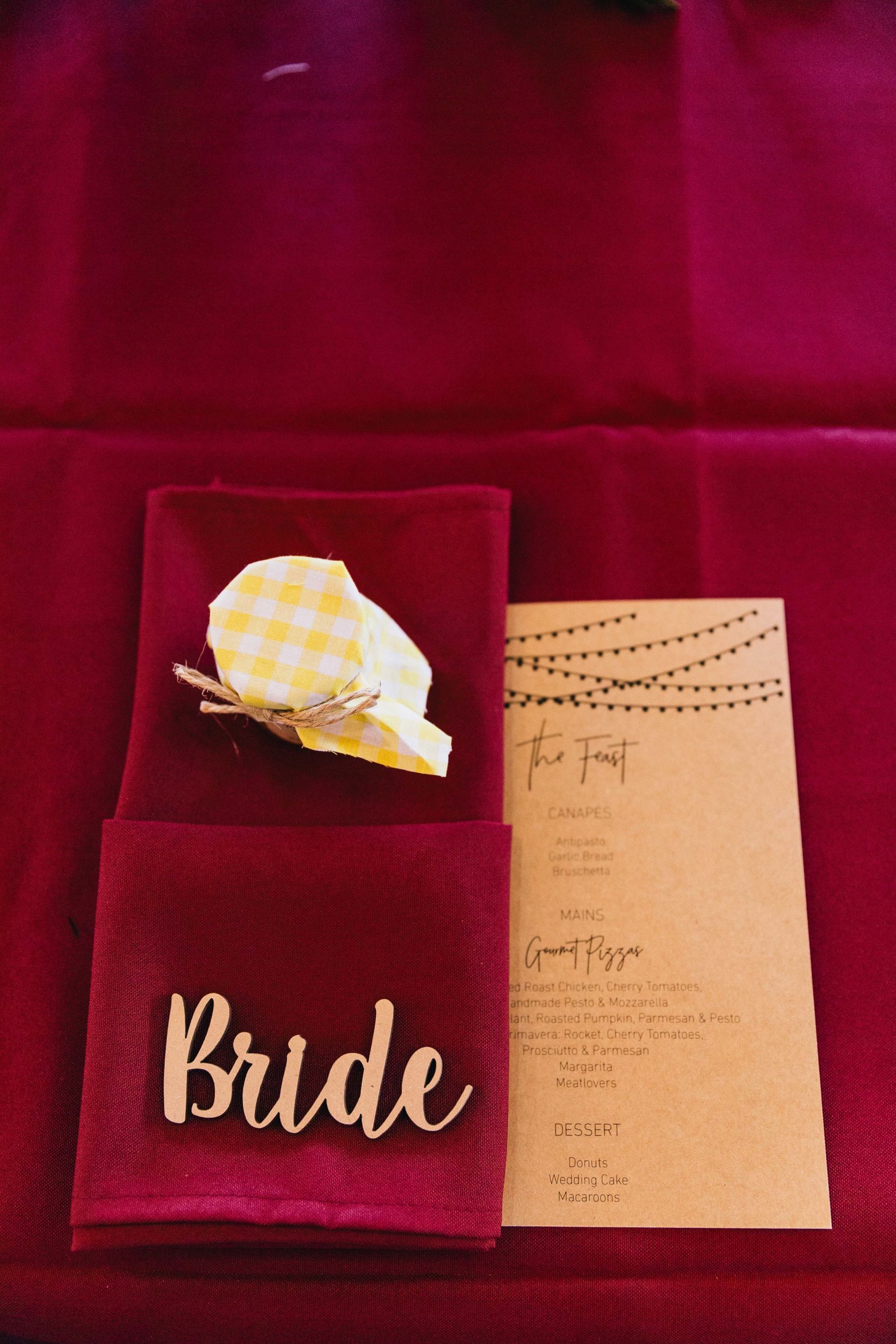 How do you describe your style and where did you find your inspiration? Most of our ideas came from following wedding vendors etc on Instagram and on Pinterest! We loved the colours Gold and burgundy and how the burgundy just made everything pop. With the rest of the styling it was lots of wooden items and native flowers. I made a lot of wooden items myself aswell from ideas I found on Pinterest.