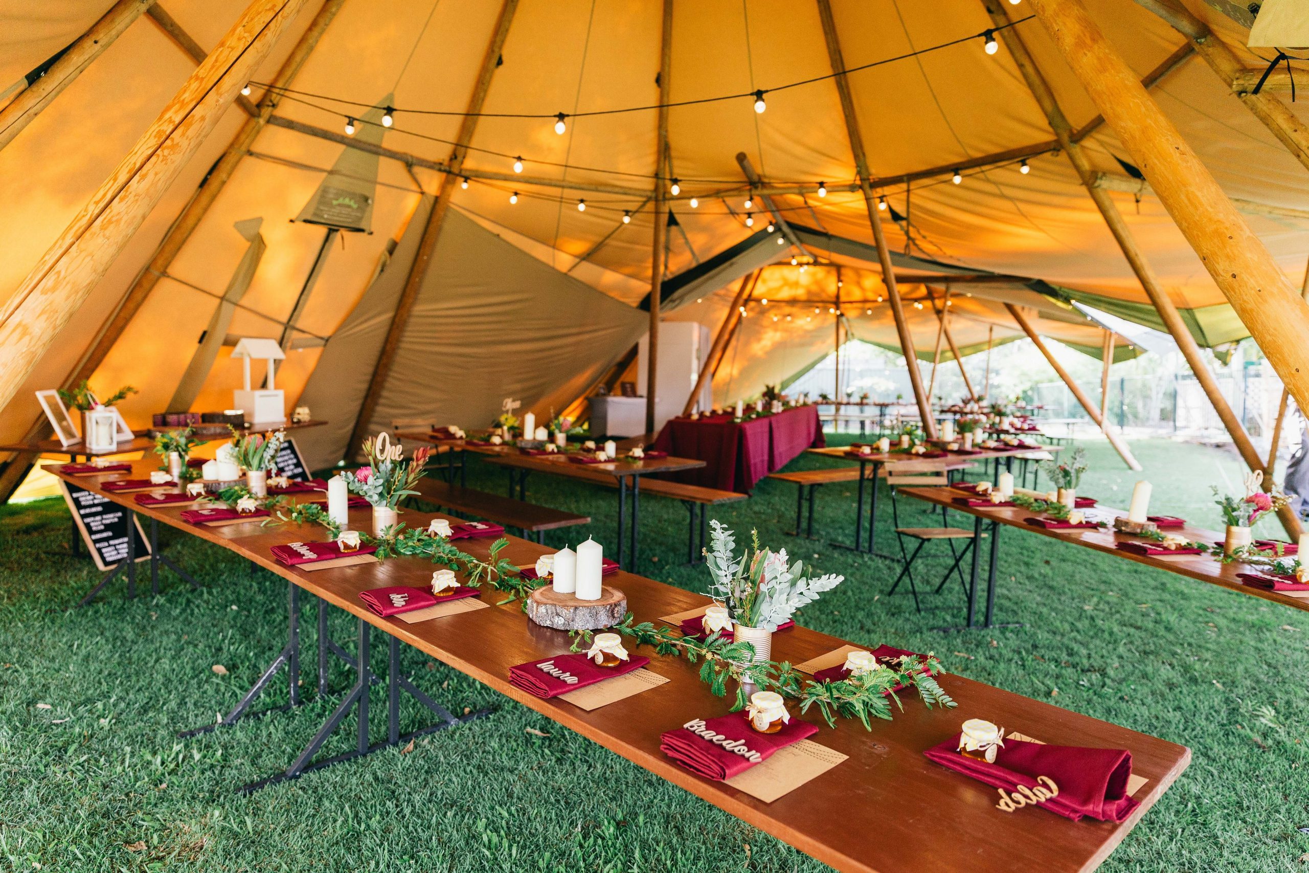 Furnishings: Tables and bench seats provided by Gold Coast Tipis