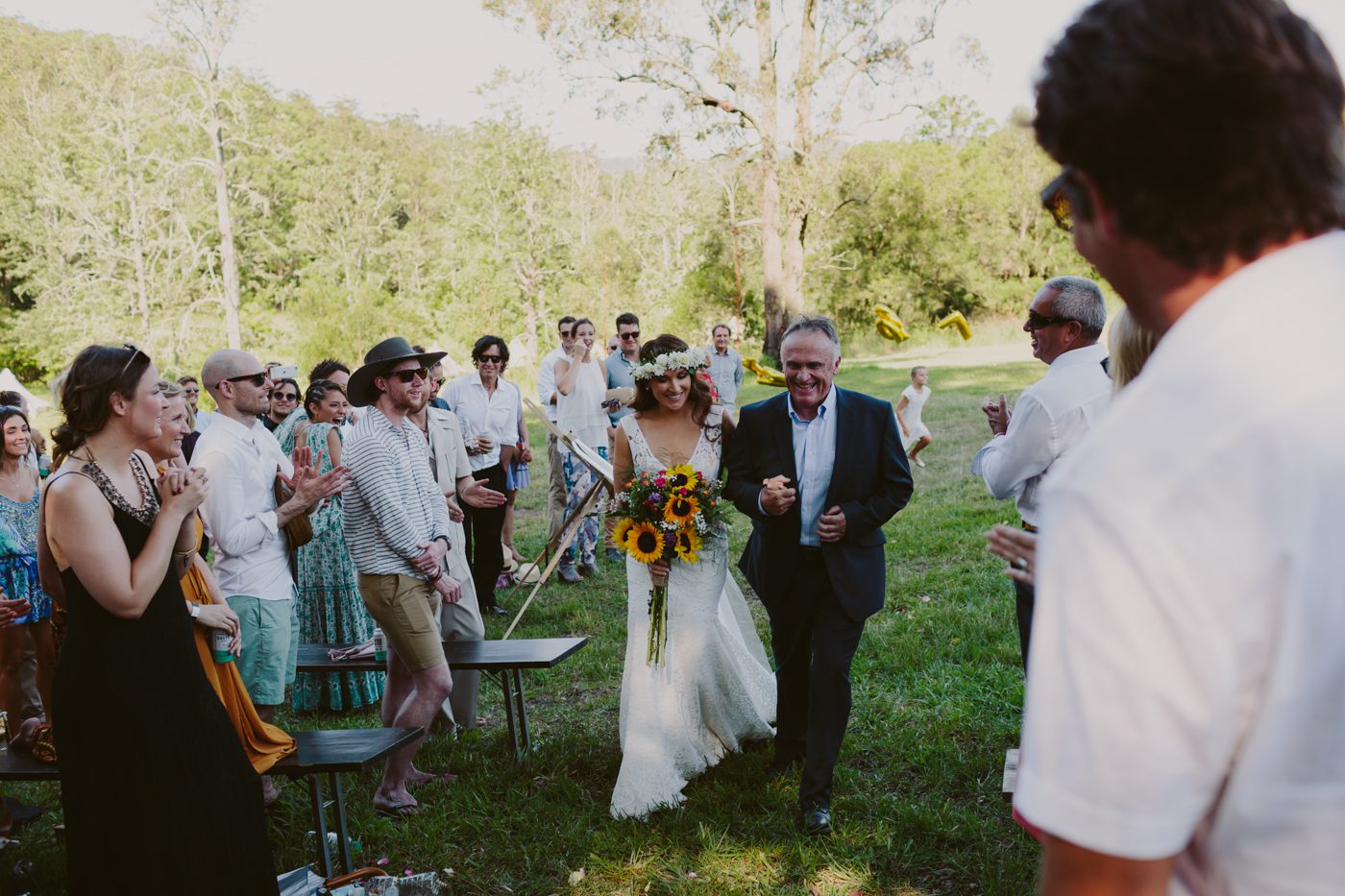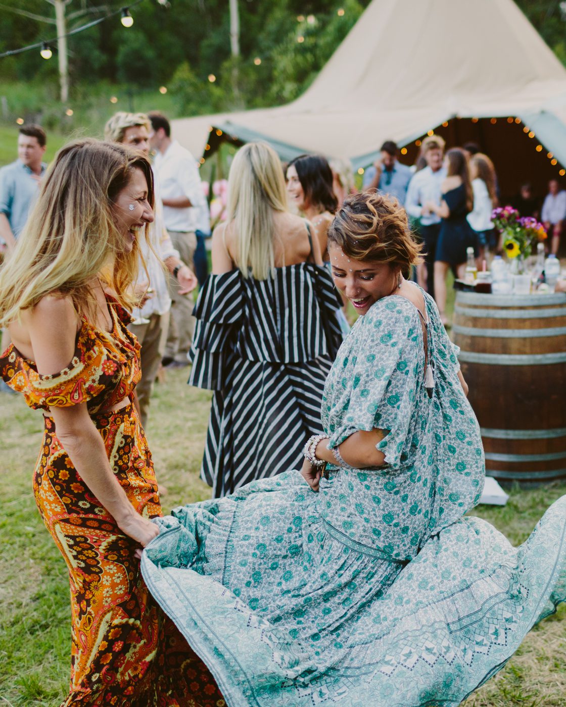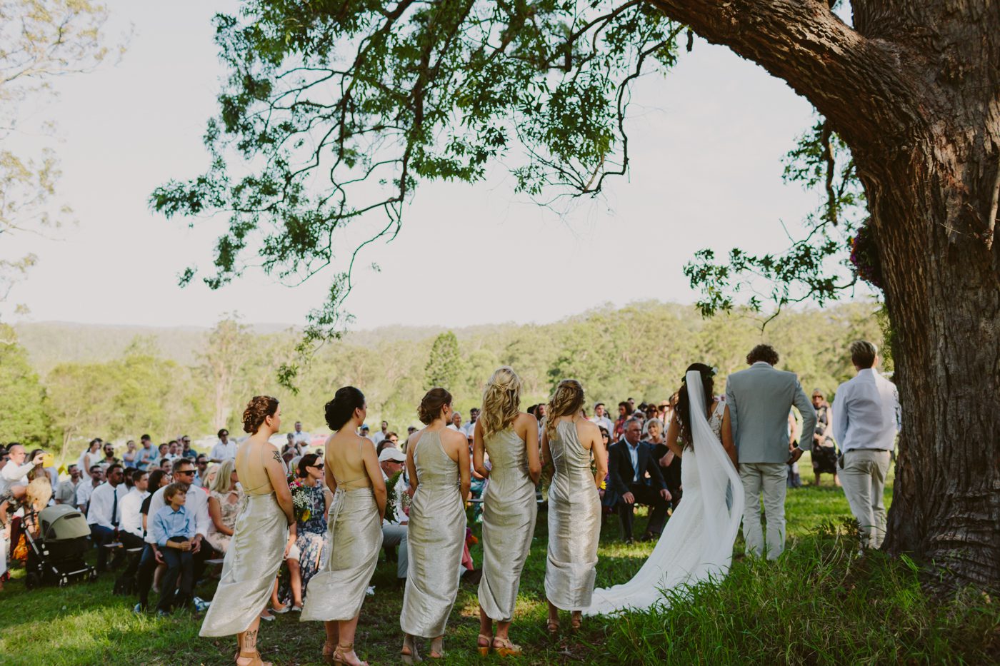 Venue ceremony reception: The Farm House, Numinbah Valley Tipis: Gold Coast Tipis Lighting: Gold Coast Tipis Florist: Rachel from Bunches Gold Coast Styling: Friends Cake: Marie Luxford Dress: Pearl Bridal Gold Coast, Designer: White April Hair: Gaylene – Get Smart Hair Make-up: Bride: Clare Fisher MUA Bridesmaids: Loren Lewis MUA Suits: Politix, Uniqlo, Zara Mens Bridesmaid’s dresses: Shona Joy Bespoke bowties: Liz Milnes Glamping tents: Glamping Days Hire Co Furnishings: Gold Coast Tipis, Trader Trove and Event Stylist and Co Photography: Beck Rocchi Photography and friend, Matty Baker Film: John Wiley – Deltoid Productions Catering: Salt Meats Cheese Bar: Austream Affairs Wedding planner: Bride and Groom Celebrant: Sue Fisher (Brides Aunty) Musician: Lily Budiasa and Kada Music DJ: Kane Dignum – aka Little Fritter Showers/toilets: Viking Rentals