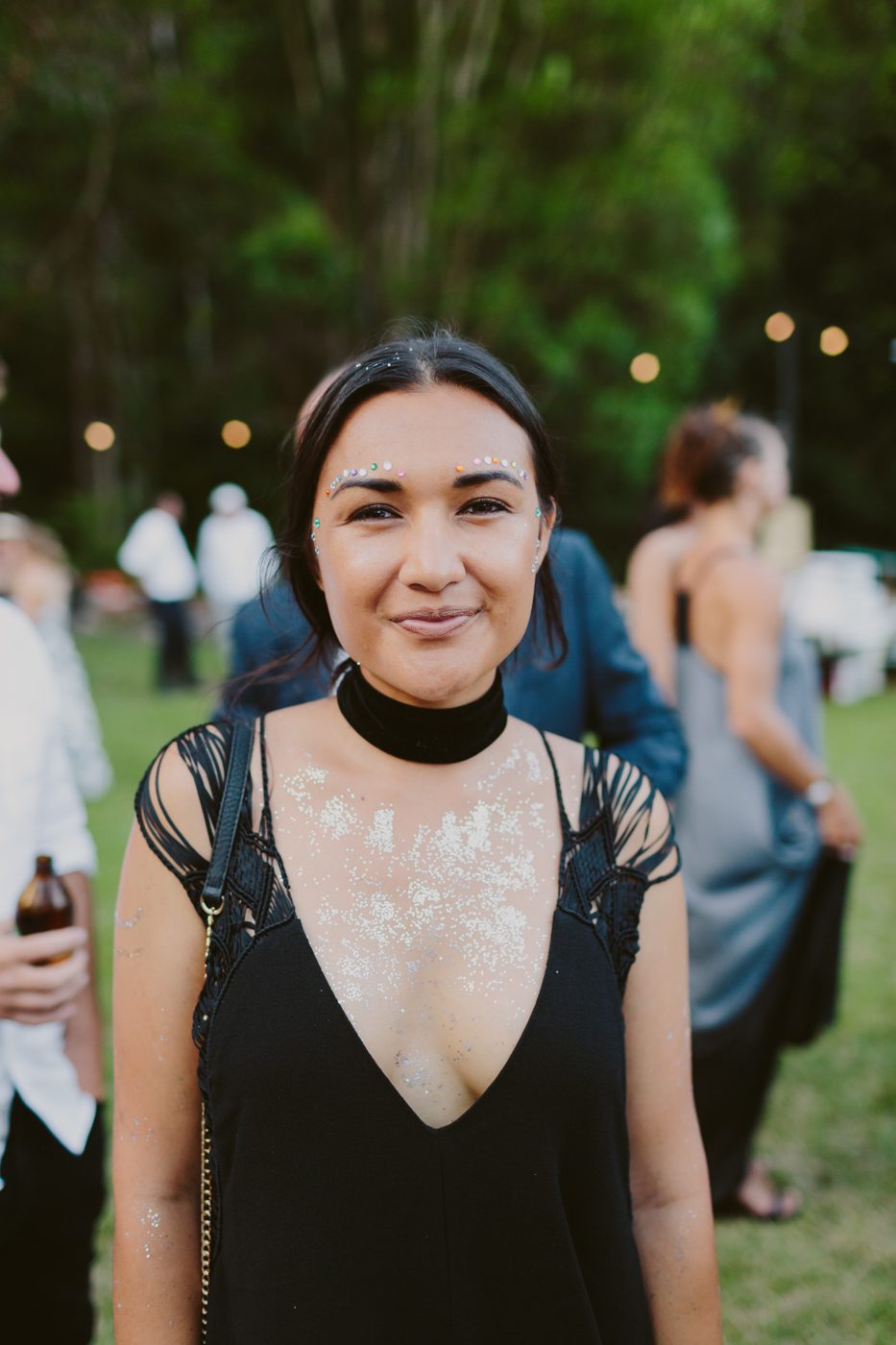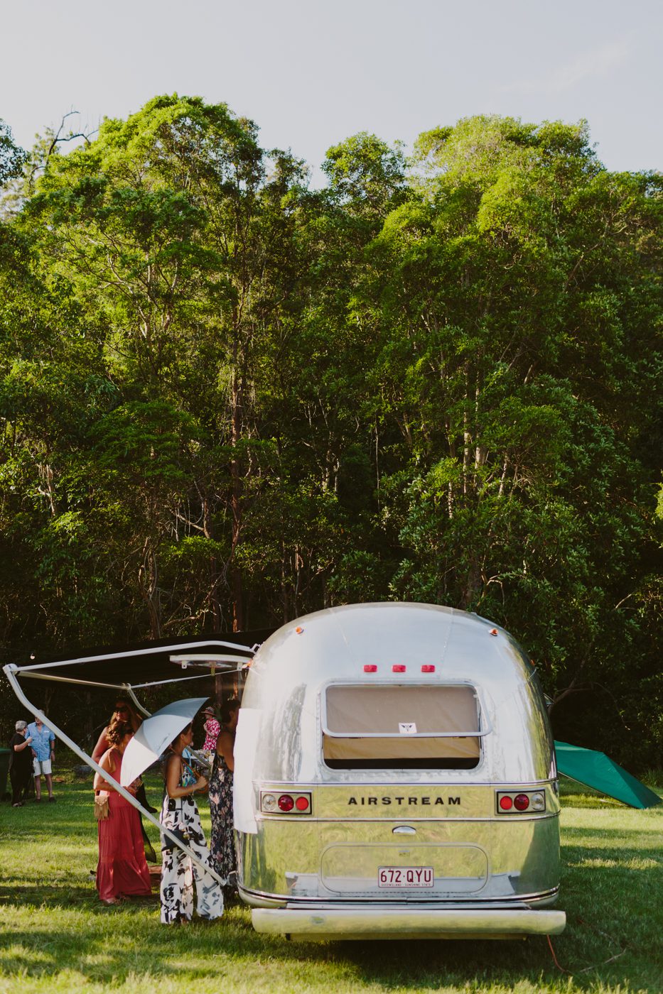 Which styling tips are a must for tipis? The tipis are so beautiful on their own. They are such majestic structures and they honestly look incredible in any Gold Coast or Hinterland setting. We knew with the tipis, lighting and silver caravan bar that the set up would look great without too much fluff. We kept it simple with fun native florals, lots of greenery and a bit of glitter to top it off! My favourite addition was the small tipi covered in fairy lights under which we made a seating area of rugs and pillows – this was such a cool little chill out zone for guests to hang out in during the evening.