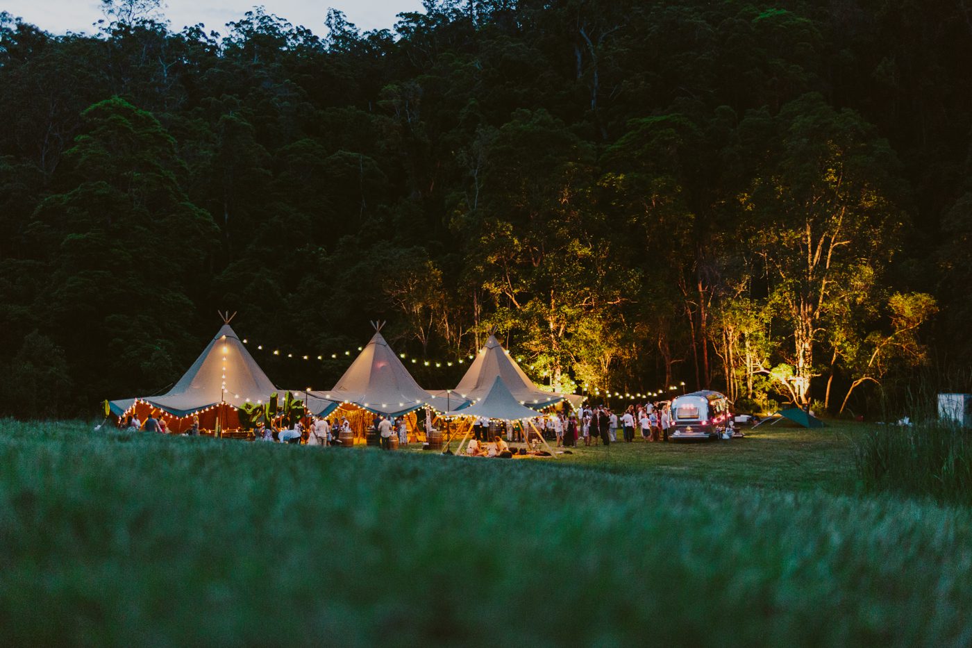 What made you choose tipis for your wedding? We wanted to create a New Years Eve festival and party experience for our friends and family. We wanted them to have as much fun as possible (as is tradition for us, always attending a festival on New Years Eve). The tipis seemed to be the only option worth considering. We weren’t interested in a typical white wedding, so having the opportunity to build an event from the ground up with the tipis, just like a real festival, is something we will never forget.