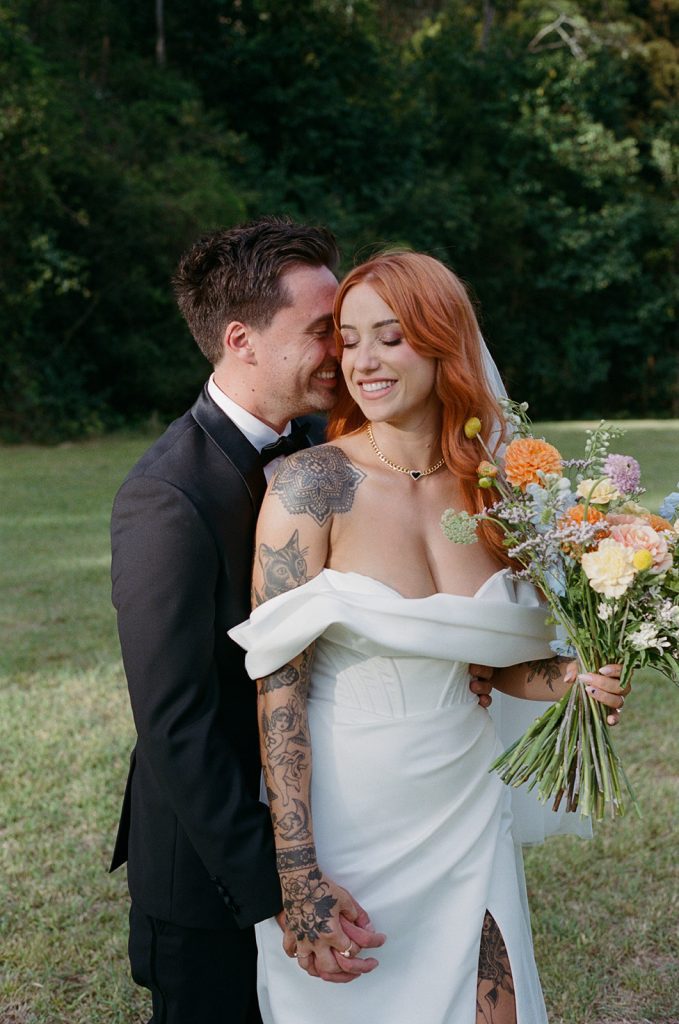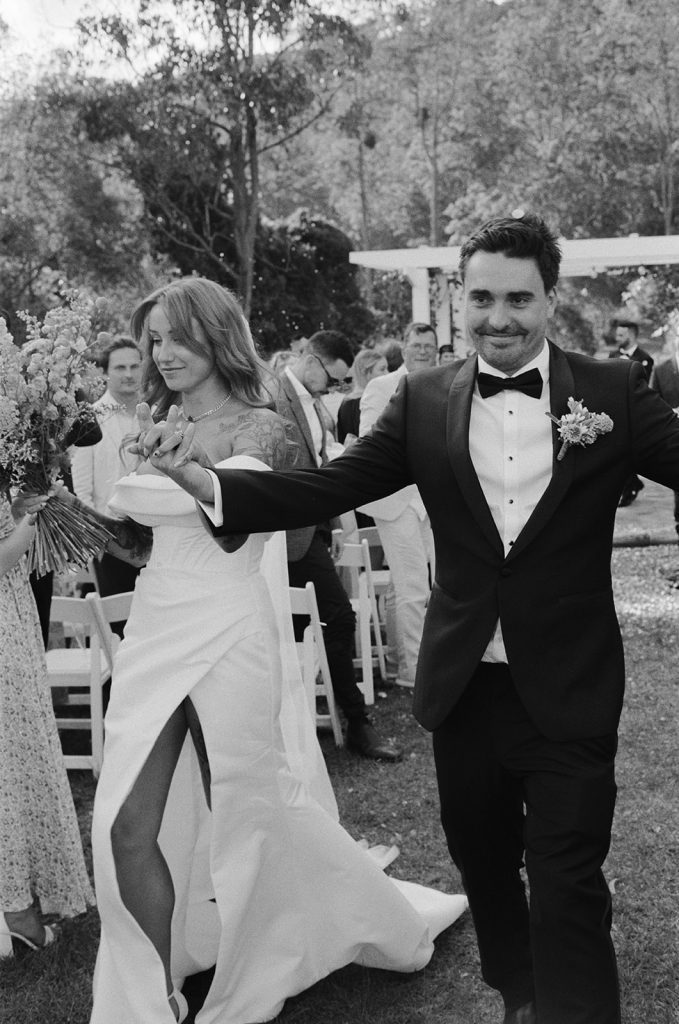 Emily and Pat’s summer wedding in Numinbah Valley was an elegant affair to remember. The bridal party looked stunning in formal black dinner suits and cocktail dresses, while Emily stole the show in a gorgeous satin gown and veil. The beautiful pastel summer blooms and bouquets by The Bud Club added a touch of whimsical beauty and wow factor to the occasion.