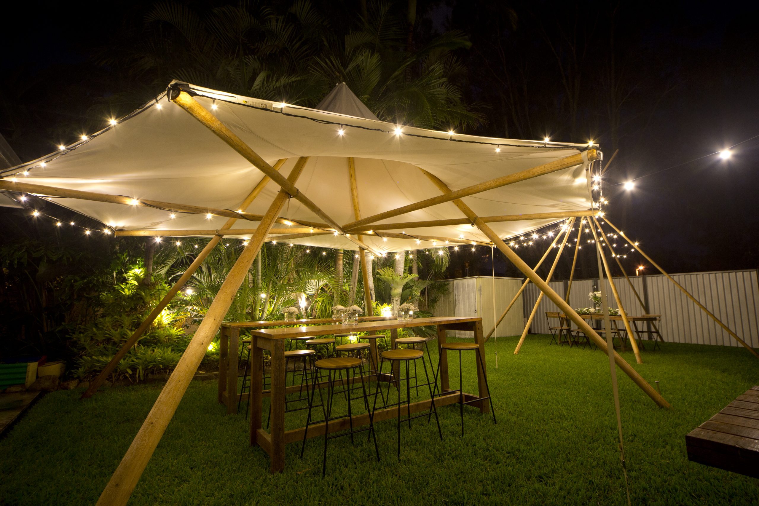The Gold Coast offers us an abundance of sunshine and indescribable weather when the sun sets on NYE day and night. You’ve made the right choice by choosing a tipi for your venue! Leave all ends of the tipi open which will allow you and your guests to socialise and mingle inside or outside. The number of guests you are hosting and the style of the event will better help you choose your tipi . Once you find one that fits your event, get in touch with us to help you decide on the perfect location to place it!. Having more of an intimate gathering? Grab a canopy tipi to add an element of surprise to the scene you create, or perhaps one of our naked tipis (no canvas) to dance the night away under the stars.