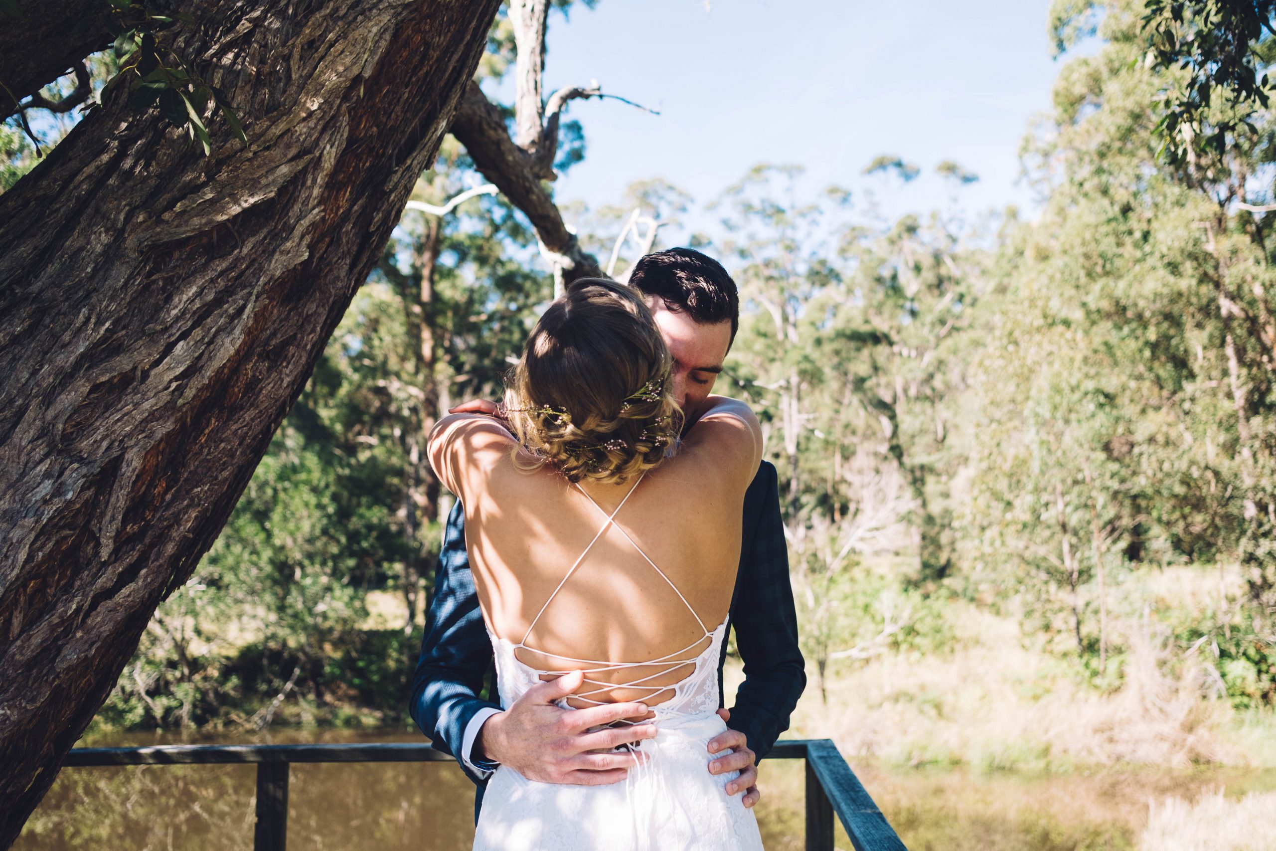 Before the ceremony, Renae and Will met for first look photos, which were made extra special with the unveiling of the gorgeous bespoke wedding dress the beautiful bride made herself.